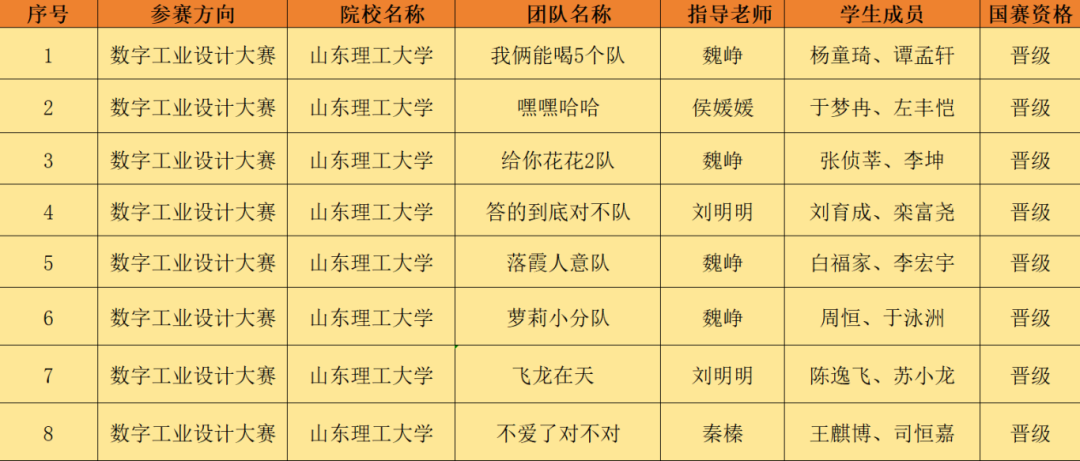 根据国赛省特等奖和夏令营优营晋级原则,魏峥老师、秦榛老师、刘明明老师、侯媛媛老师所带领的8支高水平队伍,成功斩获国赛晋级资格,拿到全国巅峰赛场的入场券!